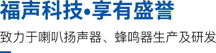 泰州福聲電子科技有限公司主要生產(chǎn)聲學(xué)器件,有著豐富的研發(fā)生產(chǎn)銷售經(jīng)驗, 我們主要生產(chǎn)喇叭、揚聲器、壓電式蜂鳴器、電磁式蜂鳴器、貼片式蜂鳴器等電聲元器件。
